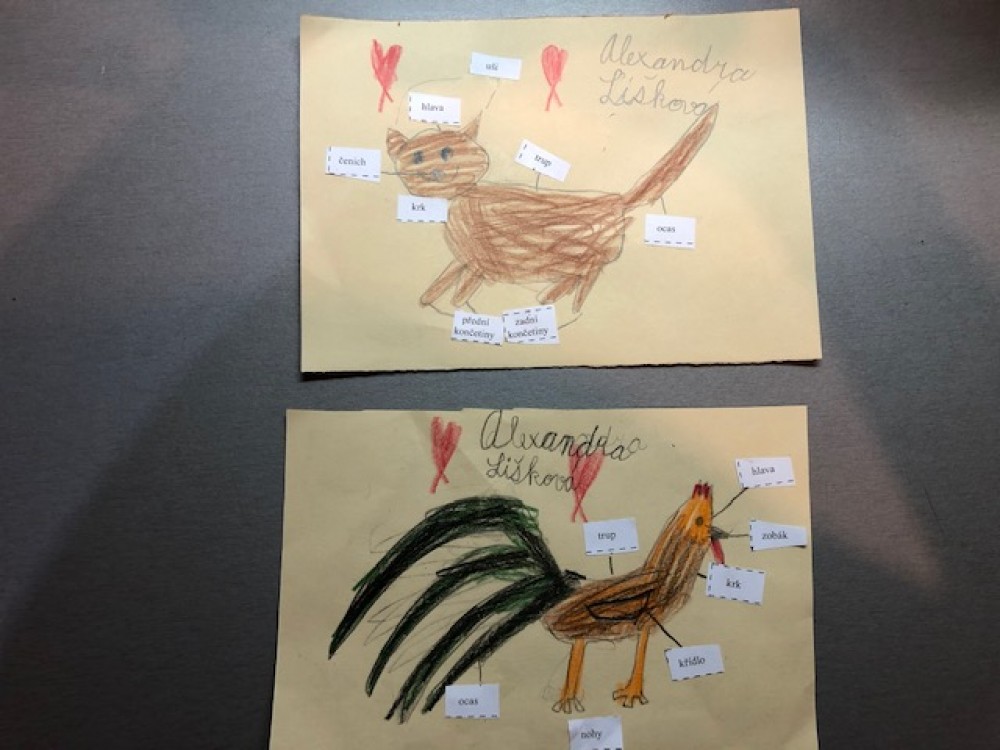 Výtvarná výchova a prvouka dohromady? Proč ne. Nakreslili jsme si kočičku a kohouta a zároveň si procvičili stavbu těla savců a ptáků.
