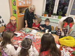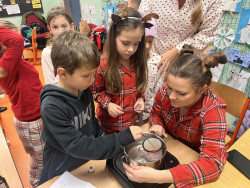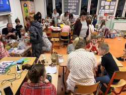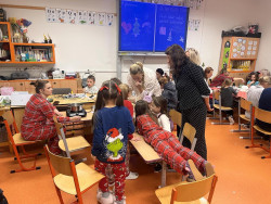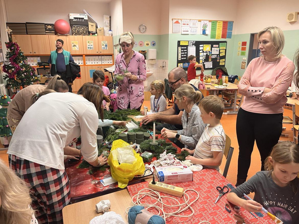 Letošní vánoční tvoření proběhlo zcela v režii rodičů. Šikovné maminky připravily atraktivní stanoviště pro všechny děti, nezapomněly ani na koutek s občerstvením. Děti si tak mohly společně s rodiči vytvořit vánoční svícen, ozdobu na stromeček, vánočního skřítka nebo pomádu na rty. Jedno stanoviště doplnila ještě paní vychovatelka ŠD - a to andílkem či skřítkem z borové šišky. A protože byl zrovna Pyžamový den, tvořili jsme pěkně pohodlně v domácím oblečení :-). Moc děkujeme za pěkné tvořivé odpoledne, které jsme si všichni náležitě užili!