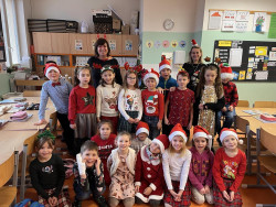 Na poslední vánoční týden pro nás žáci parlamentu připravili na každý den jiný úkol. Pondělí bylo modré, úterý patřilo pohádkovým postavám, středa pyžamový den - ten se nám moc líbil :-), čtvrtek elegantní a dnes jsme přišli vánočně oblečení. Celý týden jsme si užili a děkujeme školnímu parlamentu za toto zpestření posledních dnů roku :-)!