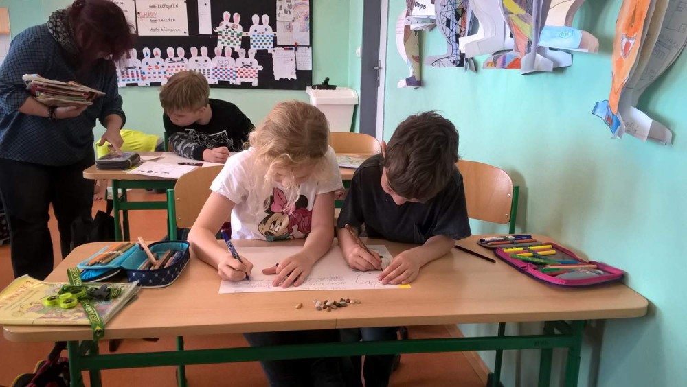 Společně s polovinou rozdělené II.C jsme v hodině slohu vypluli na Pohádkový ostrov. Žáci měli za úkol vymyslet svůj vlastní ostrov a popsat ho. Toku myšlenek a fantazii se meze nekladly, a tak vznikl ostrov Lávový, X – trimový, Beruškový a mnohé další.