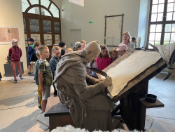 Kašpárkova dílna, krásný výukový program plný čtení, psaní a nových informací, jsme absolvovali v Rajhradě v Památníku písemnictví na Moravě. Paní lektorka nás velice poutavě poučila o vzniku písma, čím a na co se dříve psalo a děti si mohly vyzkoušet psát brkem, na psacím stroji nebo iluminovat stranu s vybraným písmenem svého jména. Určitě se rádi vrátíme na další programy.