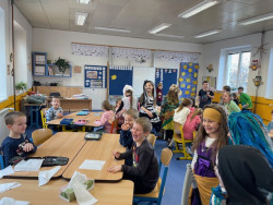 V úterý před popeleční středou vrcholí období masopustu. I v naší třídě, kde jsme se díky centrům aktivit ponořili do objevování tradic této doby, jsme zakončili stylově - tedy maškarním průvodem a veselicí. Děti přišly v krásných maskách, pilně vymýšlely různé taškařice, kterými zpestřily výuku i dalším třídám, a dokonce měly i menší hostinu díky ochotné mamince, která napekla úžasné koláče...