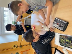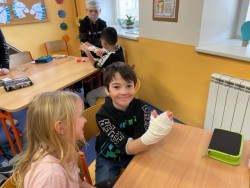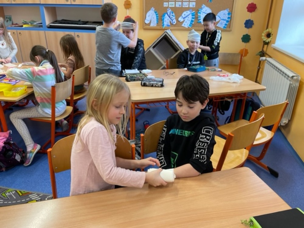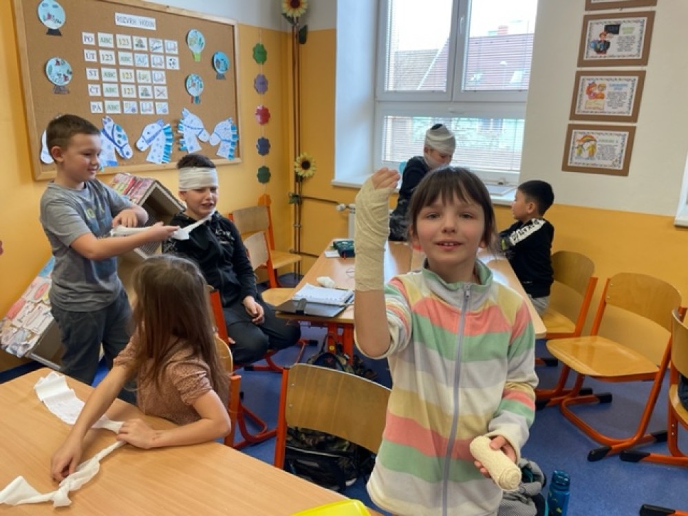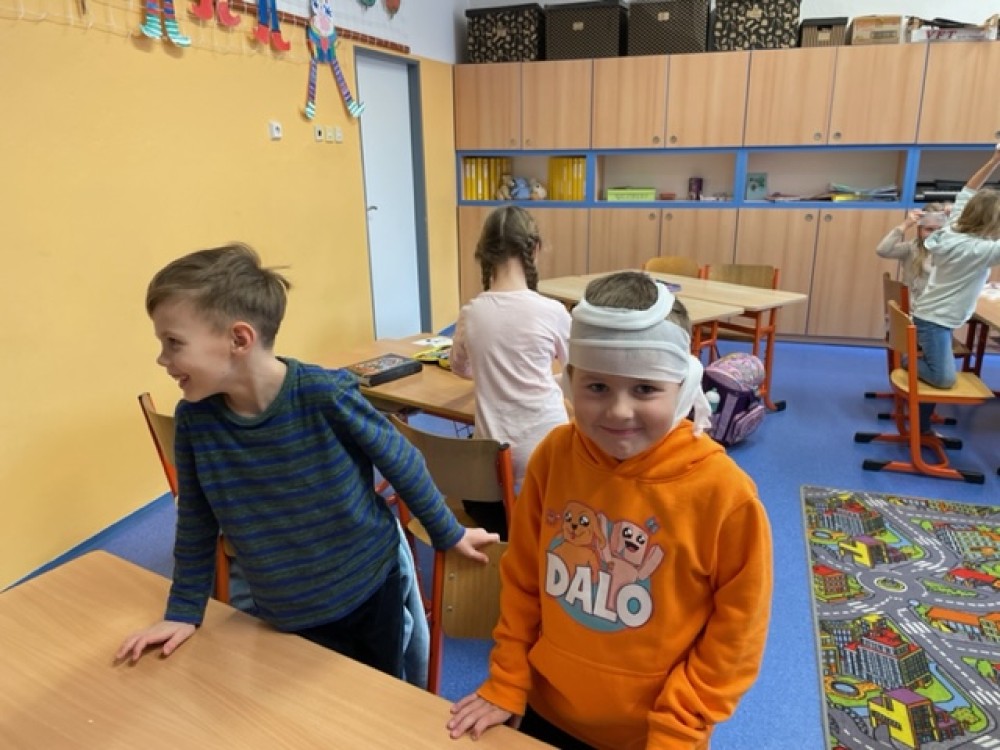 6. 2. 2023 Po hodině první pomoci už určitě děti naší třídy menší zranění nerozhází... Prakticky si vyzkoušely, jak obvázat ránu a na konci hodiny jsme měli ve třídě živou mumii:-)... 24 / 2 / 2023 EN