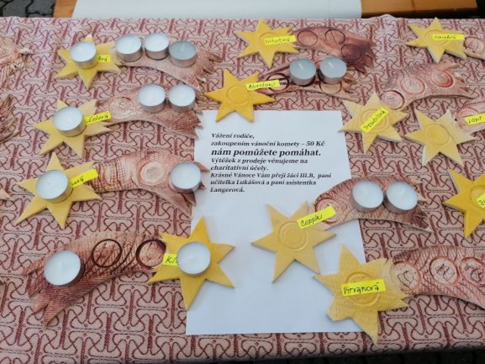 Keramické výrobky, které s námi vyrobila paní učitelka a asistentka ve svých volných hodinách, jsme s velikým nasazením prodali na školním jarmaku. My i naši zákazníci věděli, že výtěžek z prodeje věnujeme na charitativní účely, proto se v naší pokladničce objevilo víc peněz, než jsme očekávali.