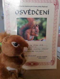 Poté jsme zkontaktovali Záchrannou stanici v Rajhradě. Promýšleli možnosti pomoci. Nejvíce se nám zalíbila možnost stát se na jeden rok adoptivními rodiči veverky, která by kvůli deformitě zubů ve volné přírodě nepřežila.