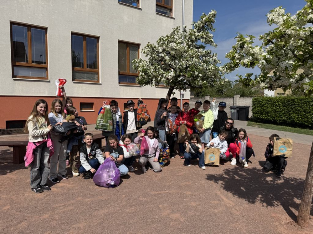 Jako každý rok jsme se zapojili do úklidu města a jeho blízkého okolí. 23.4.2025 jsme se tedy, vybaveni pytli, taškami a rukavicemi, vydali do ulic v okolí naší školy s jasným cílem. Posbírat více odpadků, než v předchozích letech. Počasí nám přálo a během dvou hodin jsme nasbíraly neuvěřitelné množství odpadu. Nadšení z posbíraných "úlovků" bylo veliké, ale objevilo se také zklamání a roztrpčení nad tím, jak někteří lidé mohou použité či nepotřebné věci jen tak odhodit do trávníku, nebo na zem. Doufám, že tyto pocity v dětech zůstanou a samy si pak rozmyslí, jak s nepořádkem naloží.