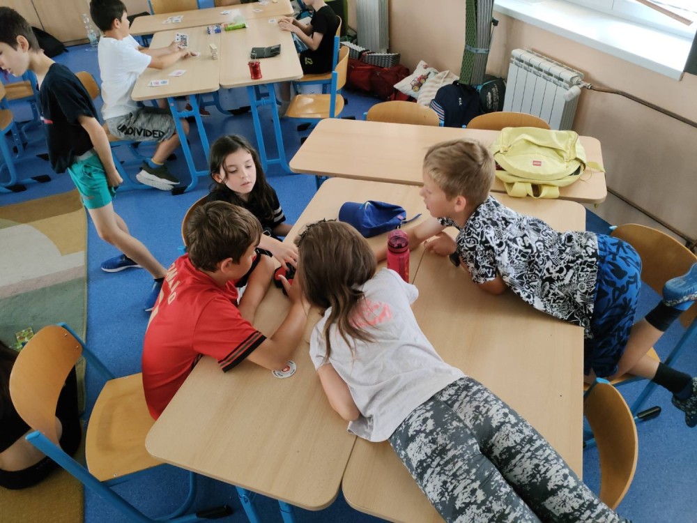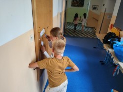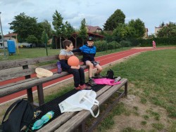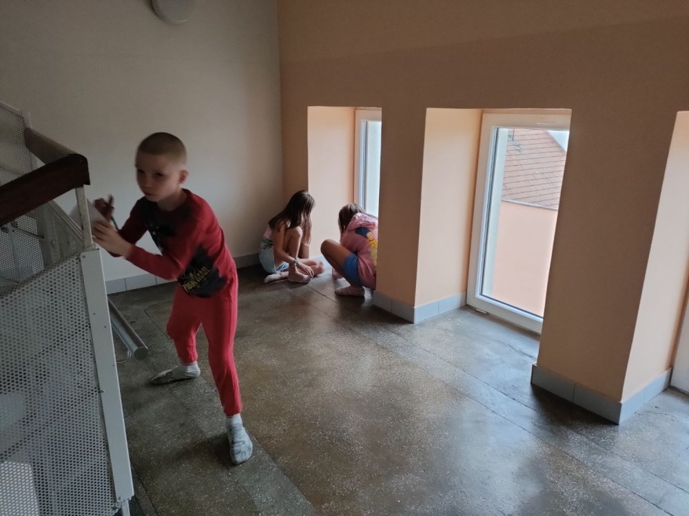Na závěr školního roku jsme si program zpříjemnili spaním ve škole. Sraz byl v 17:30, kdy jsme se sešli vybavení věcmi na party i spaní. Jako vždy nesměl chybět fotbal venku. Po večeři jsme hledali poklad po škole, povídali si, hráli, vyráběli trička a sledovali pohádku na dobrou noc. Všichni už byli zkušení "spáči" ve své třídě. Kluci také bezvadně pomáhali vytahat holčičí kufry do 2. patra. Moc je za to chválím a děkuji! :-)