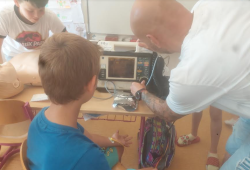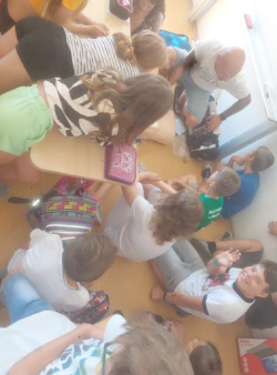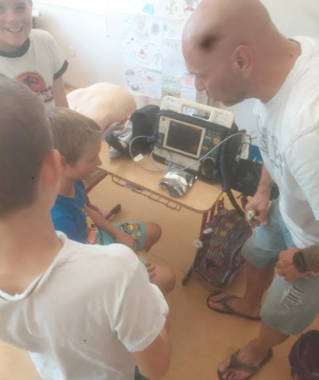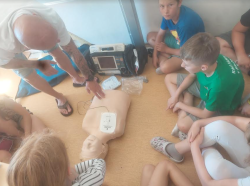 V pondělí 27.6. jsme měli besedu s panem Zemanem. Ten se již přes 20 věnuje záchranářství. Chytlavě nám popovídal o první pomoci v různých situacích, vyzkoušeli jsme si přímou masáž hrudníku na panně Anně :o), zjistili svůj srdeční tep, zkusili si práci s obvazy a dlahami.