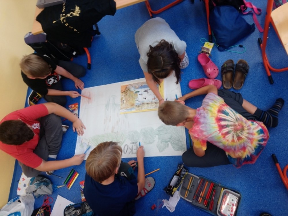 Protože nás zaujalo téma, které nás v přírodovědě čeká - EKOSYSTÉM- naplánovali jsme si, že si vytvoříme společnou prací plakát na toto téma. Každý jsme si vybrali živočichy/rostliny, kteří nás zaujali a namalovali jsme si je.