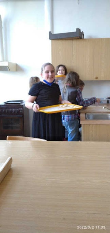 Děti ze 4.A si připomněly tradiční lidovou veselici - masopust. Některé děti udivovaly svými maskami kolemjdoucí již cestou do školy. Ve škole se představily spolužákům a zaskotačily si při zábavných pohybových aktivitách. Na závěr dopoledne si vlastnoručně připravily oblíbenou masopustní pochoutku - smažené koblížky.