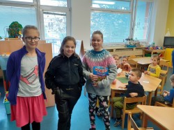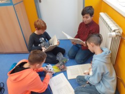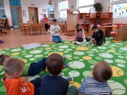 Čtvrťáci si letos vyzkoušeli práci s textem, přednes, dramatizaci a tvorbu zajímavých otázek k přečtené pohádce. Hledali v příběhu poučení a pokusili se jej předat dětem v předškolním věku. Navíc si nostalgicky zavzpomínali a navštívili paní učitelky, které se jim před několika lety ve školce věnovaly. Byla to velmi milá a přínosná zkušenost, které ovšem předcházela poctivá příprava ve skupinách, režijní a trochu i dramatická práce. Paním učitelkám ve školce děkujeme za milé a vstřícné přijetí.