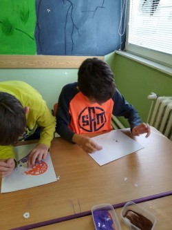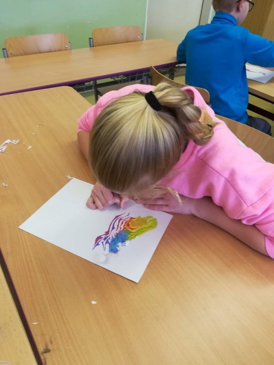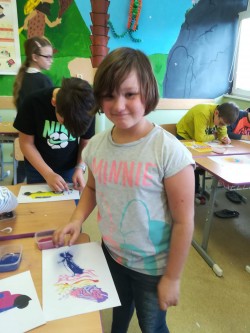 27. 3. 2019 Dnes jsme měli možnost seznámit se s výtvarnou technikou - pískování. Na šabloně jsme pomocí barevných písků tvořili krásné obrázky, až se nám tajil dech. Hodina se moc povedla a krásné obrázky jsme mohli podarovat svým rodičům. 12 / 5 / 2019 MG