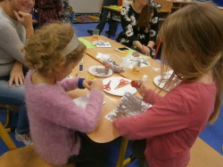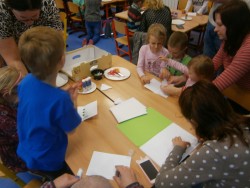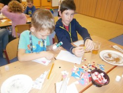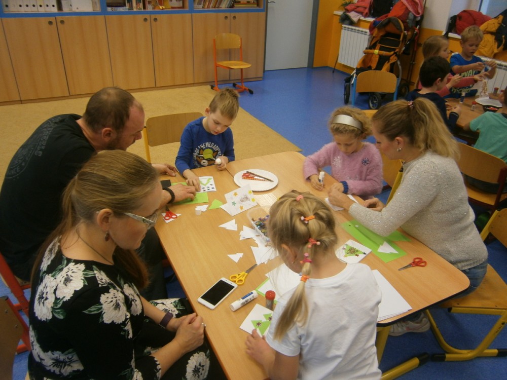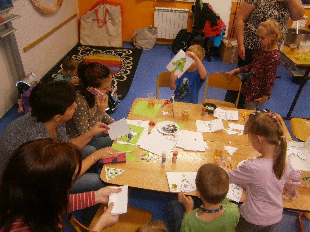 Dnešní předvánoční setkání s rodiči proběhlo v příjemné atmosféře. Zazpívali jsme si vánoční písničku. Děti vyráběly s rodiči vánoční přání podle vlastní fantazie. Někteří si ozdobili stromeček z papíru. Všichni jsme se naladili na přicházející vánoční svátky.
