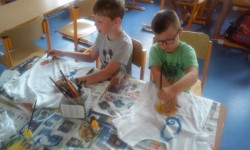 27. 6. 2019 Děti z přípravné třídy si vytvořily letní tričko. Pomocí barev na textil si pomalovaly tričko dle vlastní fantazie. Děti jsou šikulky, vznikla úžasná umělecká díla. 27 / 6 / 2019 VS