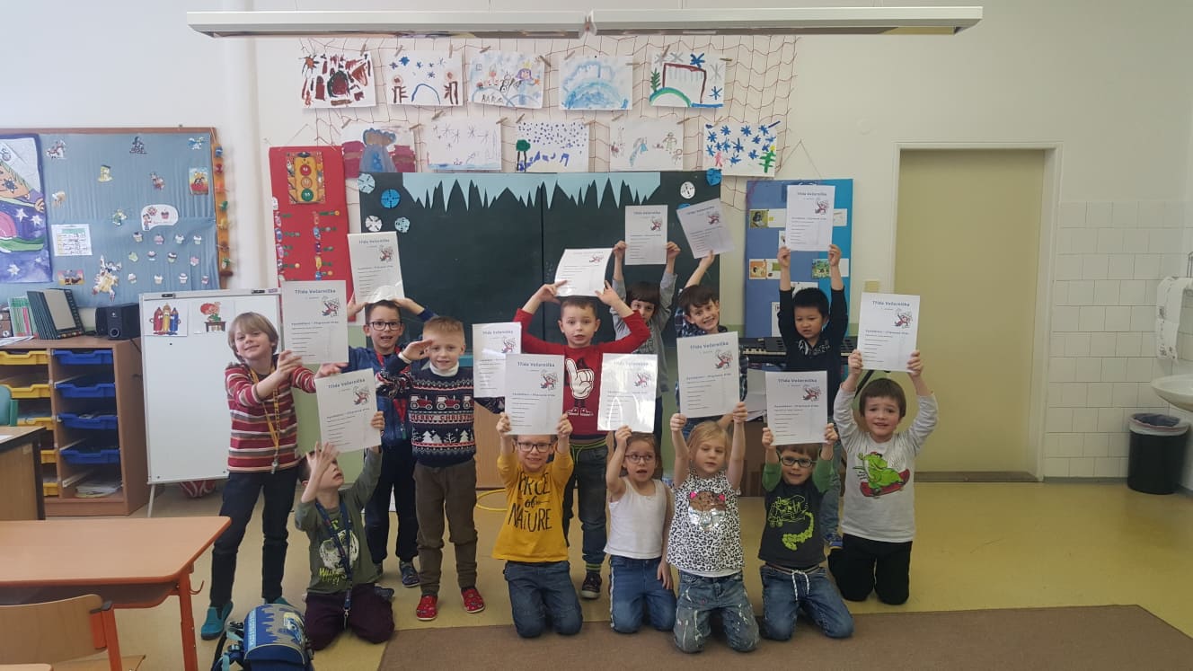 Jednou týdně si jdeme zacvičit do tělocvičny, kde máme spousta místa pro naše hry! Chodíme i ven za školu na průlezky, skluzavky, lezeme po síti, hrajeme fotbal a vybíjenou.