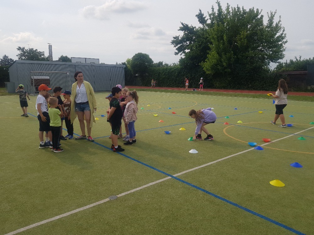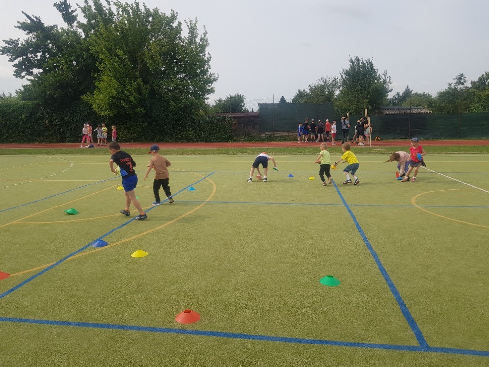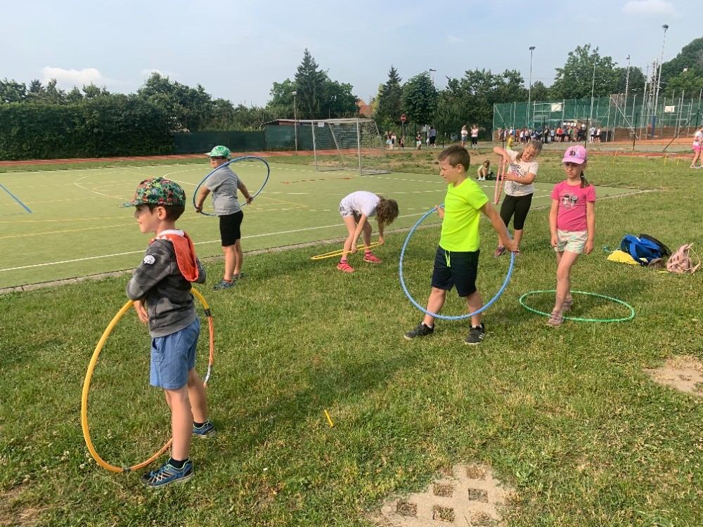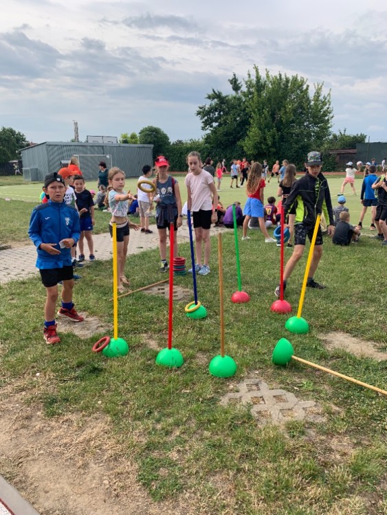 V posledním školním týdnu si žáci prvního stupně, včetně předškoláků, mohli užít sportovní den. Zahráli si fotbal, vybíjenou, zaběhli štafetu, skákali přes švihadlo a k dispozici měli dalších 14 sportovních stanovišť, včetně dopravní výchovy. Na stanovištích mladším spolužákům pomáhali žáci 5. tříd. Počasí nám přálo a všichni si den krásně užili se svými třídními učitelkami a asistentkami, které dětem fandily při soutěžích.