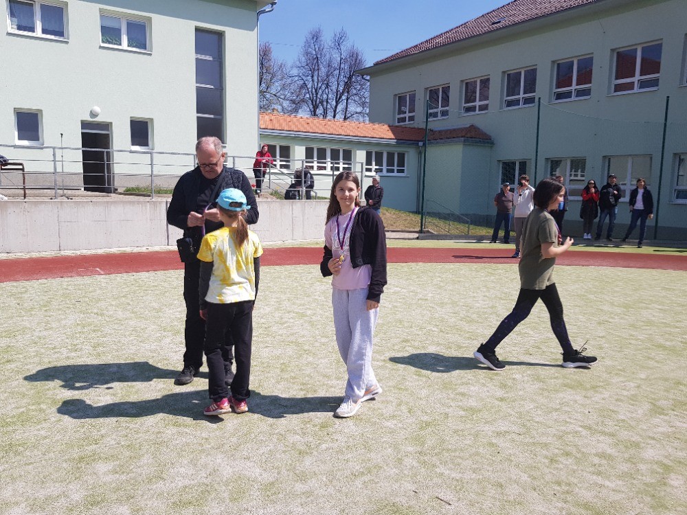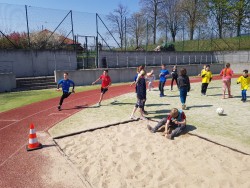 Děti si mohly vyzkoušet i doplňkové disciplíny, hod medicinbalem a skok daleký z místa. V hodu medicinbalem si první místo odnesla Viktorie Troubilová z 5.B.