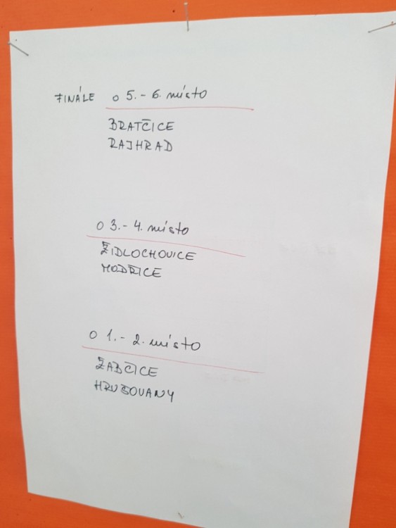 Žáci 5. tříd se zúčastnili turnaje ve vybíjené, který pořádala ZŠ Hrušovany u Brna. Celkem soutěžilo šest základních škol (Hrušovany u Brna, Modřice, Žabčice, Bratčice, Rajhrad a Židlochovice. Turnaj byl velice vyrovnaný, a to i v zápasech o celkové umístění. Žáci naší základní školy vybojovali těsně 3. místo v krásném a dramatickém souboji se žáky ZŠ Židlochovice. Zvítězili o jednoho vybitého. Všem zúčastněným gratulujeme.