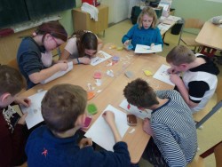Jenoduchý návod jsme ihned všichni zručně zvládli a začali tvořit krásné, barevné kombinace. Na konci hodiny jsme byli v záplavě pestrobarevných aut, čápů, papoušků i slonů. Některá vznikající umělecká díla si můžete prohlédnout v galerii pod příspěvkem.
