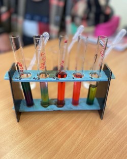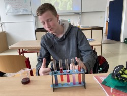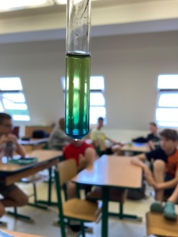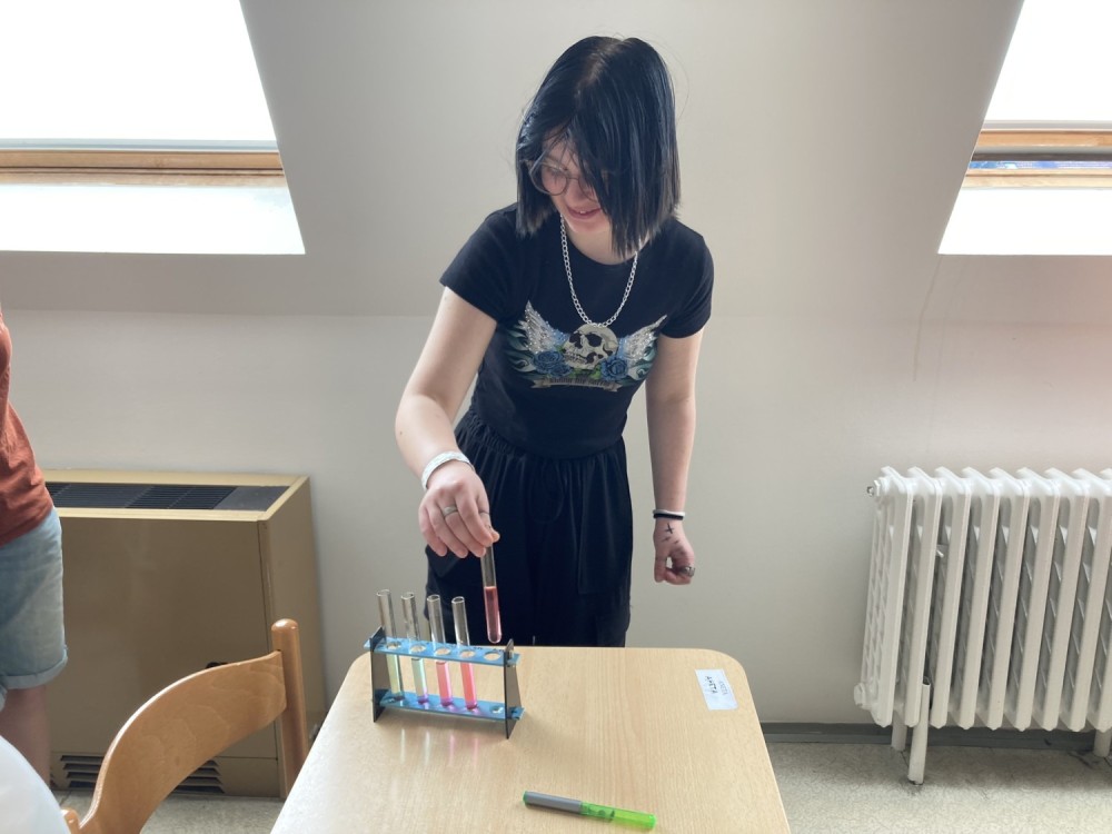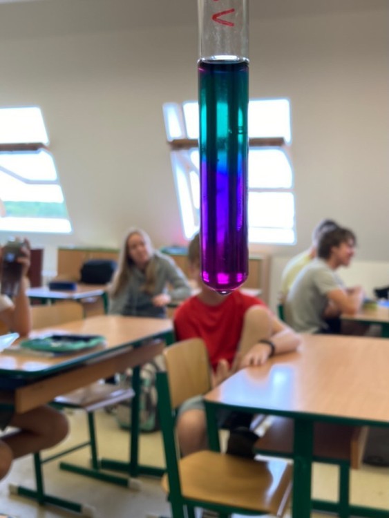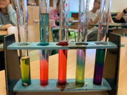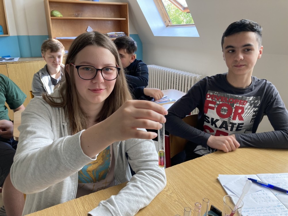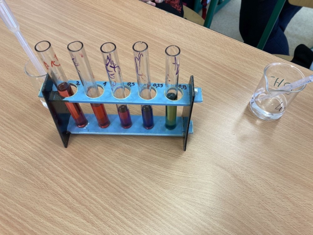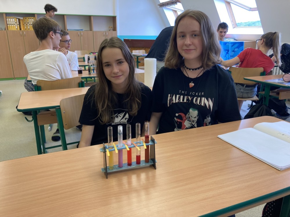 Tento týden jsme se s osmými třídami seznamovali s kouzlem pH indikátorů - látek, které mění barvu podle toho, zda se nachází v roztoku kyselém, nebo zásaditém.