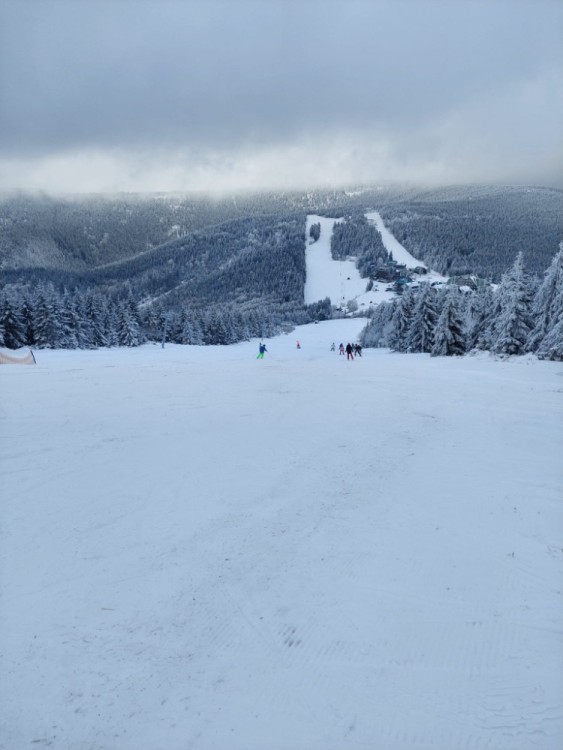 Lyžování na Červenohorském sedle.