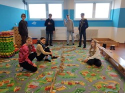 V úterý jsme se vydali do Technického muzea, abychom si prohlédli výstavu Stroje Leonarda da Vinci. Museli jsme chvíli čekat na pana průvodce, a tak jsme se zabavili ve fyzikální herně, kde jsme prozkoumali celou řadu různých přístrojů a vychytávek. Největší zábava ale byla v dětském koutku, kde jsme si všichni společně začali spontánně stavět z dřevěných dílků. Nějak ani nevadilo, že jsme z různých tříd a různého věku.