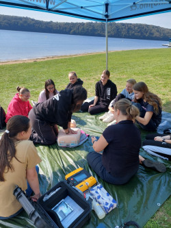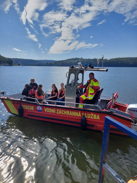 V pondělí 23. září jsme se se spolužáky 9. tříd vydali na výlet na Vranovskou přehradu, abychom tam strávili den s vodními záchranáři. Po cestě autobusem na nás čekalo krásné slunečné počasí na hlavní pláži přehrady. Během dne jsme si vyzkoušeli resustitaci, zastavit krvácení, ale i jak správně zavolat pomoc. Také jsme se projeli na záchranářském člunu po přehradě. Snažili jsme se naučit hodit pomocné lano tonoucímu, což nám zprvu moc nešlo, ale nakonec se někteří z nás přesně trefili na cíl, který byl přikotven ve vodě.