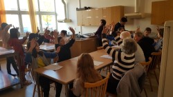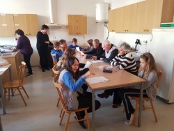 Žáci z 6. A nacvičili se seniory z PBDS pěvecké vystoupení na Jarmark ZŠ Modřice. Připojila se k nám i paní vedoucí z PBDS Jitka Kozumplíková, která zpěvem podpořila své svěřence. Na keyboard nás doprovázela vyhlášená modřická hudebnice Jitka Kafková a na housle pan Obdržálek. Vystoupení doplnila tancem i naše úžasná baletka z 5.A Sofie Urbanová. Hodně jsme se nasmáli, společné nacvičování jsme si všichni moc užili a těšíme se na další spolupráci.