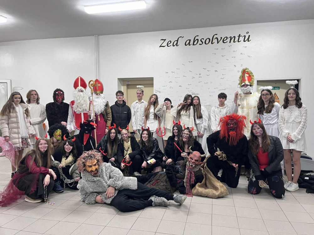 I letos jsme na naší škole pokračovali v oblíbené mikulášské tradici. Role Mikulášů, andělů a čertů se ujali žáci devátých ročníků, kteří se vydali potěšit děti z prvního stupně i mateřské školy. Vznikly tedy tři skupiny – tři Mikulášové, andělé a čerti – jejichž hlavním cílem bylo děti hlavně pochválit, podpořit a naladit na sváteční atmosféru blížících se Vánoc. Nechybělo ale ani jemné upozornění na drobné neplechy. Přestože byly přípravy místy hektické, deváťáci si s rolí poradili skvěle. Dokázali improvizovat, ale hlavně být empatičtí a laskaví k malým dětem, především těm nejmenším....