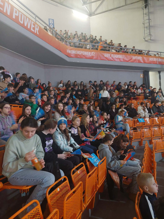 V pondělí 8. prosince se žáci celého druhého stupně vydali fandit florbalistkám na mistrovství světa žen, které se letos konalo v Brně a Ostravě. Naším cílem byla sportovní hala na Vodově ulici, kde jsme zhlédli utkání mezi týmy Singapuru a Německa.