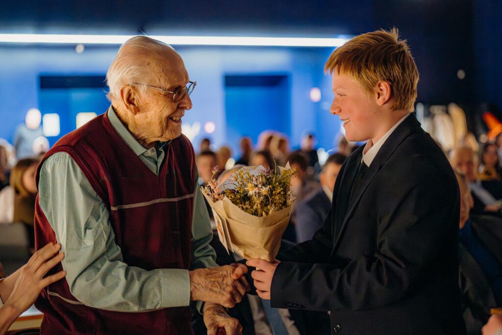 S pěti žáky naší školy jsme se i letos zúčastnili projektu Příběhy našich sousedů, kdy jsme zaznamenali životní příběhy pana Františka Šedého. Pan Šedý se narodil v roce 1927 v Líšni, válku přečkal na Valašsku, kde studoval gymnázium. Po roce 1948 byl z politických důvodů vyloučen ze studií zvěrolékařství, po několika letech si mohl dodělat alespoň průmyslovku. S manželkou a třemi dětmi emigrovali v roce 1969 přes Vídeň do Lucemburska. Zde pan Šedý, dnes již ovdovělý, žil více než čtyřicet let. Dnes žije v Modřicích v Pasivním bytovém domě pro seniory, děti s rodinami žijí v Lucembursku a několikrát ročně se navštěvují.