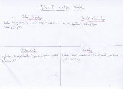 V letošním školním roce byli žáci sedmého ročníku navštěvující regionální zeměpis opravdu velmi šikovní. Z tohoto důvodu bych se s vámi chtěla podělit o jejich práce. Jedná se o dotazníkové šetření mezi občany Modřic a SWOT analýzu Modřic z pohledu žáka.