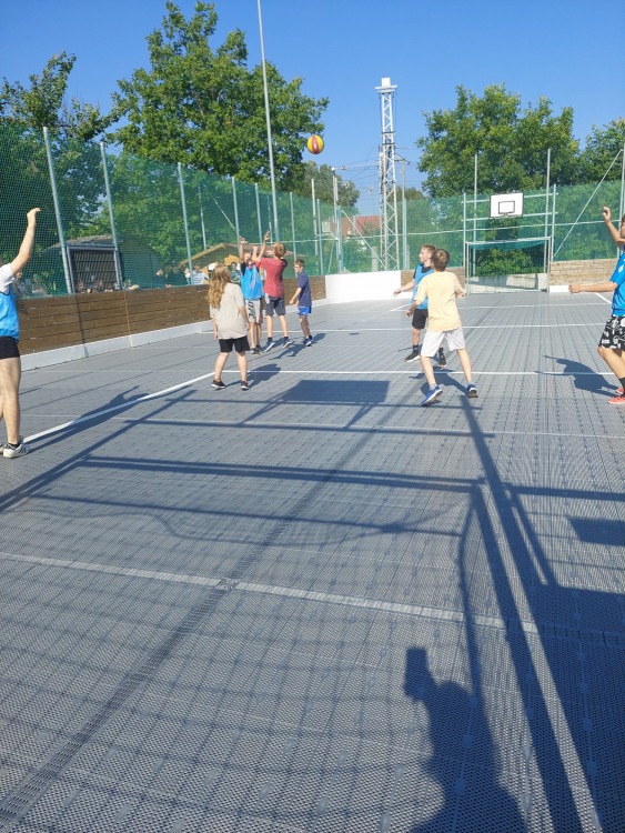V posledním týdnu před prázdninami jsme uspořádali sportovní den pro 2. stupeň. Za velké pomoci žáků 9. tříd jsme hráli fotbal, basketbal a přehazovanou, ale i skákali do dálky, házeli medicinbalem nebo běhali štafety. Také jsme vyplňovali test na první pomoc a dopravní výchovu. I když bylo velké teplo, tak všichni bojovali a snažili se. Celkovým vítězem byla nakonec třída 8. A.