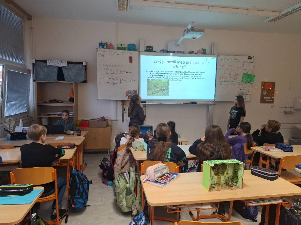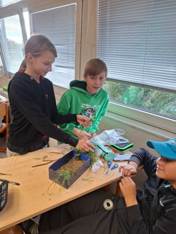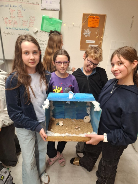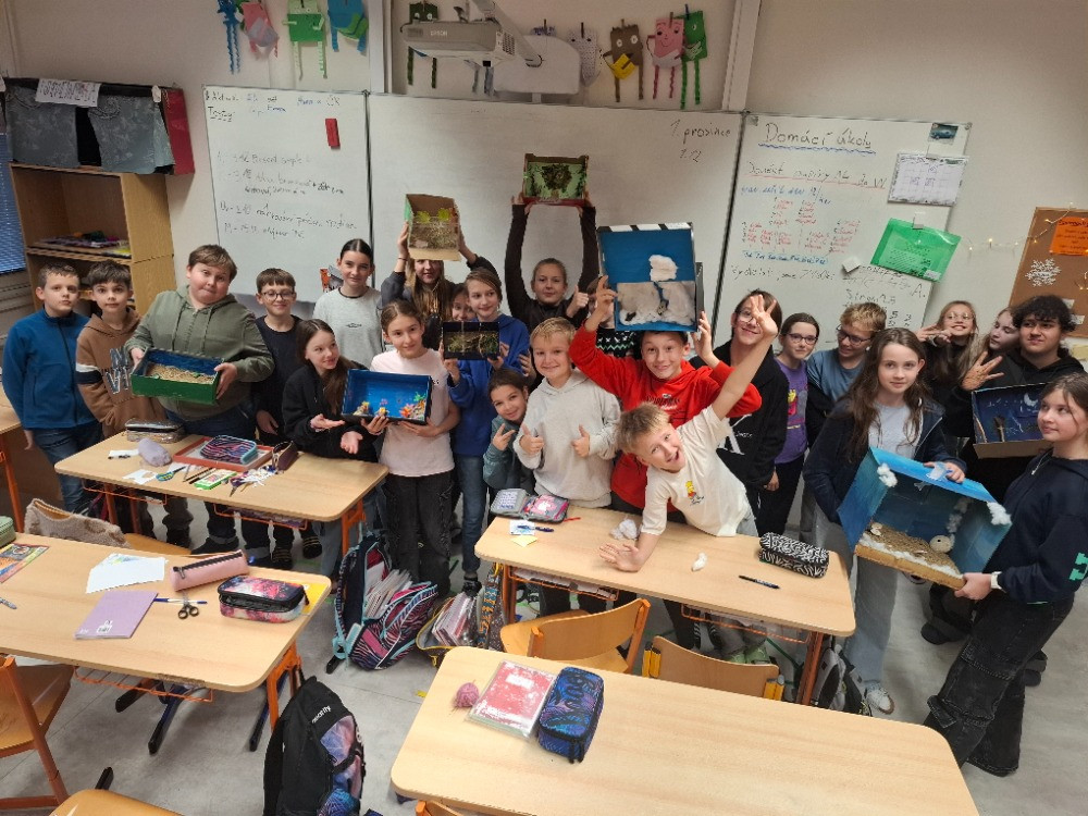 V hodinách ekologie se žáci 6.A pustili do tvoření vlastních „mini-světů“. Každá skupina si vybrala jeden ekosystém a měla za úkol převést ho do krabice tak, aby z ní bylo na první pohled patrné, jaké podmínky v prostředí panují a jaké organismy v něm žijí. ![]()