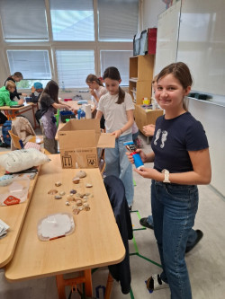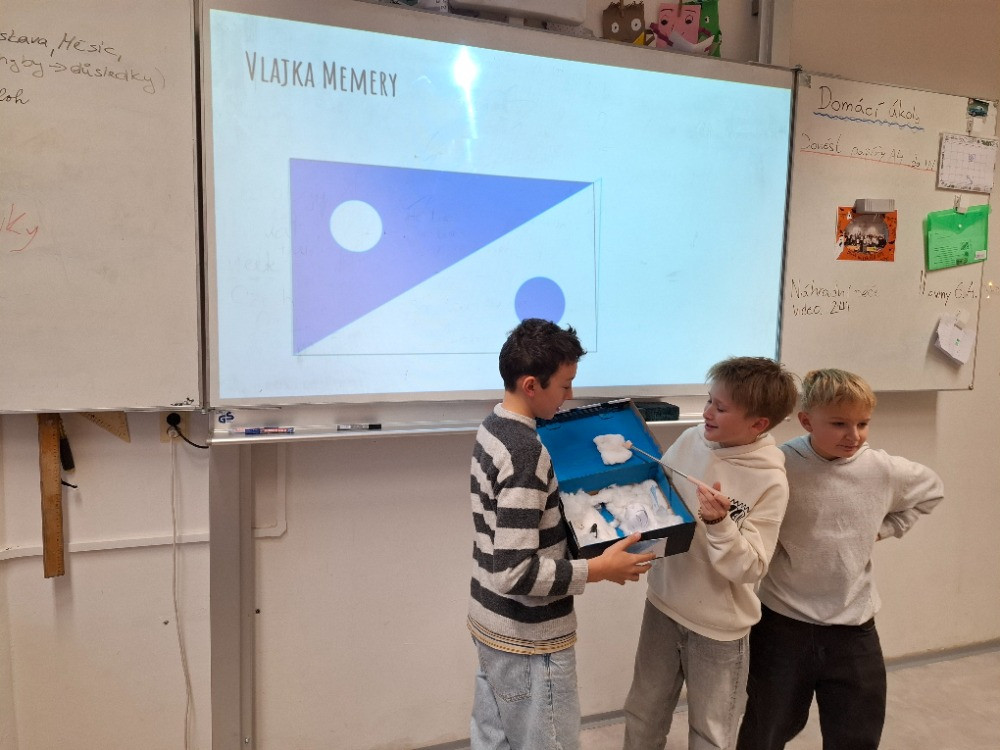 Když byly krabice hotové, přišla na řadu prezentace. Skupiny představily nejen svůj model, ale i to, jak se jim spolupracovalo a co se během práce naučily. ![]()