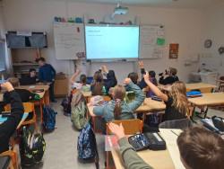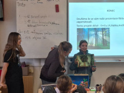 Na závěr se žáci navzájem ohodnotili – chválili se za nápaditost, pečlivost nebo originální zpracování, ale také si dávali doporučení, co by příště mohli vylepšit, například výraznější popisky, lepší rozvržení prostoru nebo jasnější mluvený projev.