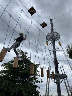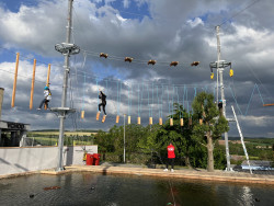 V Permoniu na žáky čekal pestrý program. Celé odpoledne strávili soupeřením na lanových aktivitách, v přilehlých bludištích či luštěním nejrůznějších úkolů. Každá skupina, která cestu dokončila, dostala malou odměnu. K večeři jsme si na ohni opekli špekáčky a už na žáky čekala cesta odvahy v důlní věži. Zkouška odvahy to byla i pro paní učitelku, aby žáky samotné po tmě do tak vysoké věže vůbec pustila. Žáci vše zvládli na jedničku.