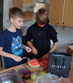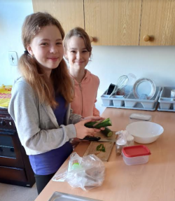 Se 6.A jsme připravovali lahodné saláty. Bylo mnoho různých variant, ale u dětí vedly jednoznačně ty zeleninové. I když jsme se tu setkali i se salátem z ovoce, dalšími "dobrotami" byl i balkánský salát, okurkový salát s recepturou z Korei, anebo jednoduchý italský salát pocházející z Kampánie - caprese.