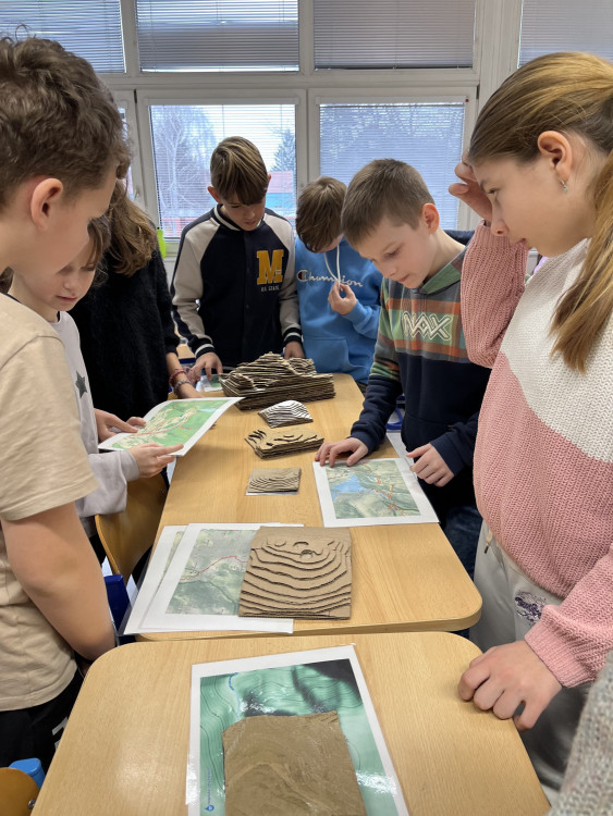 Kromě klasické práce v hodinách jsme si letos vyzkoušeli dělat modely terénu a následně s nimi pracovat, abychom uměli správně číst vrstevnice na mapě. V rámci tématu biosféra jsme rozvíjeli nejenom své dovednosti práce ve skupině, ale také jsme si zkusili, jaké je to být v roli učitele, když jsme svým spolužákům psali zpětnou vazbu, co se nám na jejich práci líbí a co by případně bylo dobré zlepšit. Dostali jsme se také trochu do terénu, kde jsme si zkusili práci s buzolou a měřítkem mapy a plánu. Některým skupinách se pomocí azimutů podařilo vyluštit ukrytou tajenku. Škoda, že některé skupiny se raději vzdaly předčasně, než aby zabojovaly a dorazily do cíle.