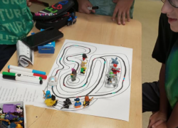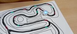 Potom jsme vyhledávali tratě, které se jezdí v Evropě a ty jsme na větší formát zpracovali tak, aby po nich mohl jezdit Ozobot (robot jezdící po čáře).