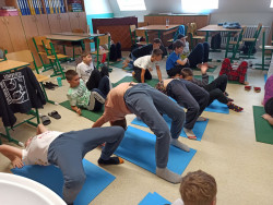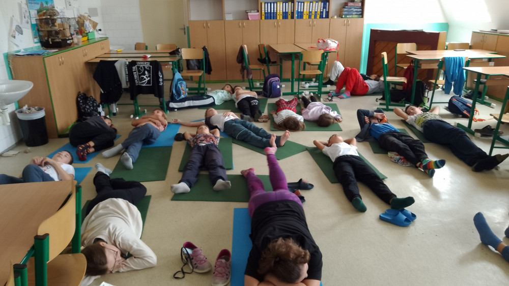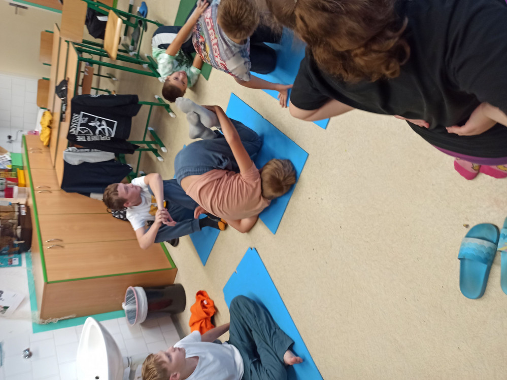 Letošní Den evropských jazyků se na naší škole nesl ve znamení sportů. Žáci 6.B si mohli vyzkoušet jógu, relaxaci a dechová cvičení, to vše ovšem v němčině. Na začátku dne se děti naučily některá německá slůvka, označující jógové pozice, například strom, kobra nebo pes. Trénovali jsme v aplikaci Quizlet a Blooket. Následovala jógová hádanka, kdy všichni zkoušeli, jak by asi podle nich mohly jednotlivé pozice vypadat. Někteří projevili velkou fantazii a také fyzickou flexibilitu. Poté jsme jednotlivé jógové ásány modelovali z pastelíny. Následovala relaxace po obědě a povídání, potom jsme se společně naučili ještě některá německá slůvka, označující části těla. Celý den byl plný tvoření, kreativity, pohybu a zábavy, což při závěrečném hodnocení většina žáků ocenila.