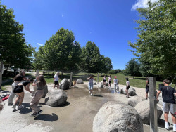 V úterý se naše třída umístila na krásném druhém místě - velká gratulace a radost! Následující program byl čistě v rukou žáků, a tak jsme ve středu vyrazili pěšky do Olympie. První část dne jsme strávili na hřišti, někteří žáci využili prostředí k workoutu, jiní zavzpomínali na rané dětství na houpačkách a prolézačkách, jiní se sebou měli kolečkové brusle nebo skateboard a čas strávili aktivním sportem. Poté následoval rozchod v Olympii, osvěžení vodou a mokrý pěší návrat do školy.