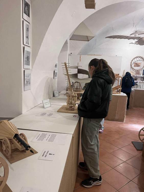 Následně jsme se přesunuli do města na výstavu strojů Leonarda da Vinci.
