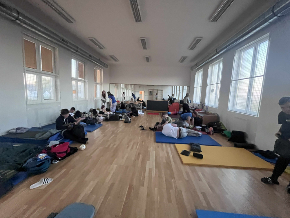 Během večera bylo vidět, jak osmáci ladí komunikaci, rozdělují si úkoly a reagují na nečekané situace (večer jsme si ztížili tím, že jsme spali na budově 1. stupně, kde nemáme zázemí). Vznikaly tak vtipné situace, kdy pomohl smysl pro humor, a ochota hrát s kartami, které nám byly rozdány. A to je důležité! Každý přispěl tím, co umí – někdo plánoval, jiný se staral o hladký průběh hry nebo se proměnil v neohrožené strašidlo. Všichni dohromady vytvořili skvělý tým, který si poradil i s drobnými improvizacemi. Večer v našem kruhu jsme pak vyplnili blbnutím s gymnastickými míči v tělocvičně, společným zhlédnutím strašidelné pohádky promítnuté na improzované plátno z gymnastických žíněnek a ponocováním do pozdních nočních/ranních hodin, což neocenily hlavně starší ročníky, tedy jenom já! :)