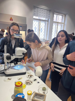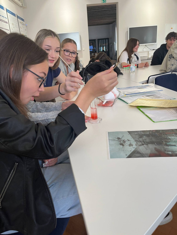 V laboratoři si také osahali práci s moderním vybavením – pipetovali roztoky v laminárním boxu, pozorovali preparáty pod 3D mikroskopem i klasickým mikroskopem a vyzkoušeli si přesnou laboratorní práci, kterou běžně dělají skuteční vědci.