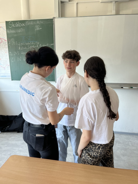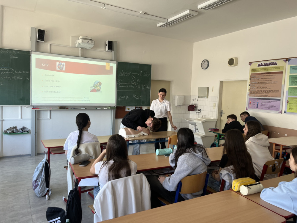 Včera ve třídě 8.B proběhl projektový den „Na slovíčko se záchranářem – první pomoc v praxi“, který byl součástí výchovy ke zdraví a environmentálního vzdělávání. Žáci si v průběhu dne na vlastní kůži vyzkoušeli, jaké to je být v roli záchranáře a poskytnout první pomoc.