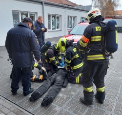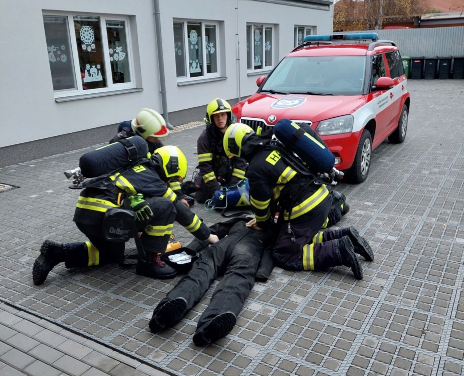 23. 11. 2022 Námětem cvičení byla záchrana osoby s intoxikací oxidem uhelnatým z plynové kotelny ZŠ Modřice. 24 / 11 / 2022 KK