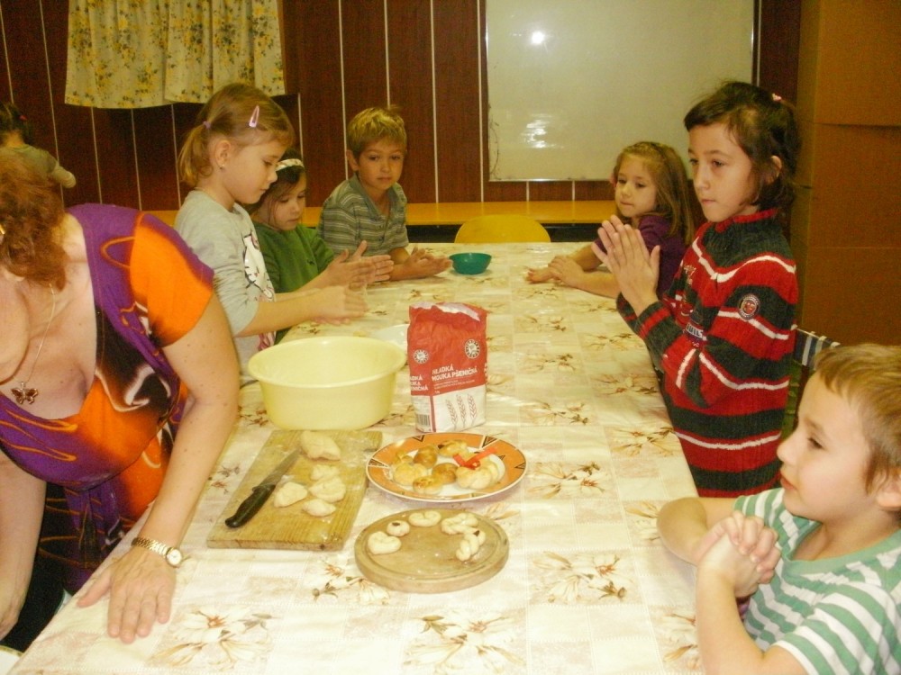 V úterý 29.11.jsme navštívili CVČ Bystrouška, kde jsme se připravovali na Vánoce. Děti pekly z těsta malé vánočky, panenky, buchtičky, potíraly je bílkem a než se těsto upeklo, zazpívaly si vánoční písničky při kytaře.