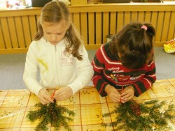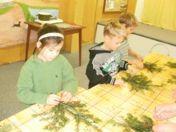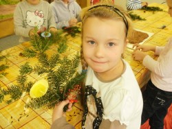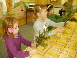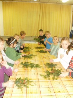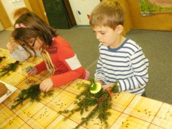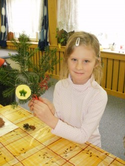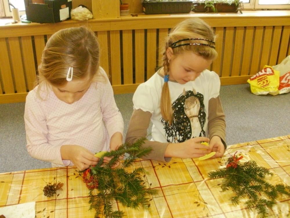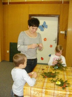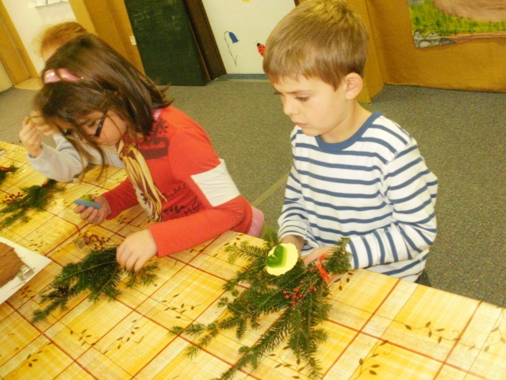 V jiné místnosti děti odlévaly barevné svíčky a vytvářely své ozdobné větvičky s mašličkami, šiškami a jinými ozdůbkami.