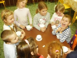 Čekalo nás také věštění z hrníčků, pod kterými byla schovaná překvapení - podle toho, co si děti vylosovaly, bylo jasné, co je asi čeká a nemine - srdíčko = láska, hodinky = málo času, žárovka = dobrý nápad, klíč = stěhování, apod.